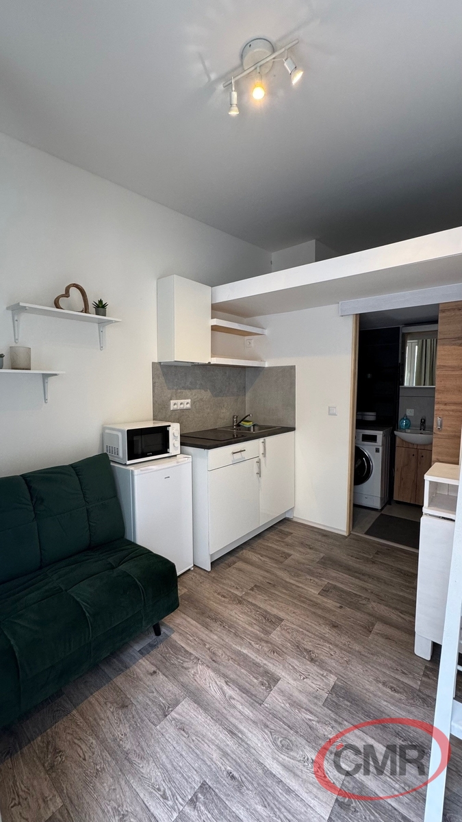 Ateliér 11 m2 + patro na spaní cca 3 m2 situovaný ve vyhledávané lokalitě v širším centru Prahy, P-3 Žižkov, Husitská. Jedná se nově vybudovanou jednotku skládající se z jedné místnosti s kuchyňkou vybavenou lednicí s mrazákem, indukční deskou a mikrovlnkou. Dále je zde koupelna s malou vanou vybavená pračkou se sušičkou a WC. Nad obytným prostorem je patro na spaní. Ohřev vody boilerem, jednotka je vybavena klimatizací. Vstup je přímo ze dvora, který je pod celkovým uzavřením. Hned u jednotky je možnost za příplatek parkovacího stání. Součástí pronájmu je malý sklep 1 m2 v hlavní budově. Jednotka je kompletně vybavena nábytkem. Volné ihned. Vřele doporučuji prohlídku!