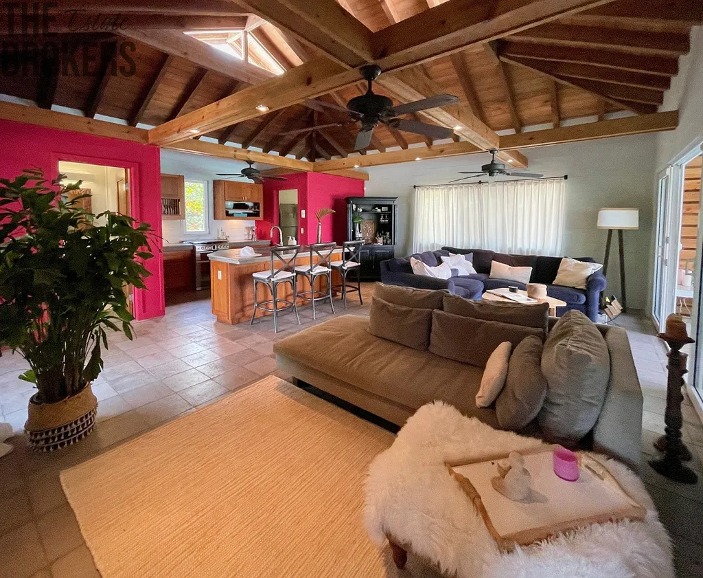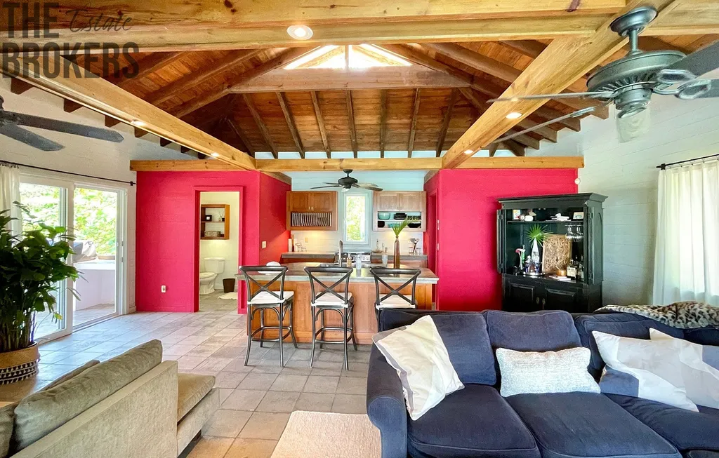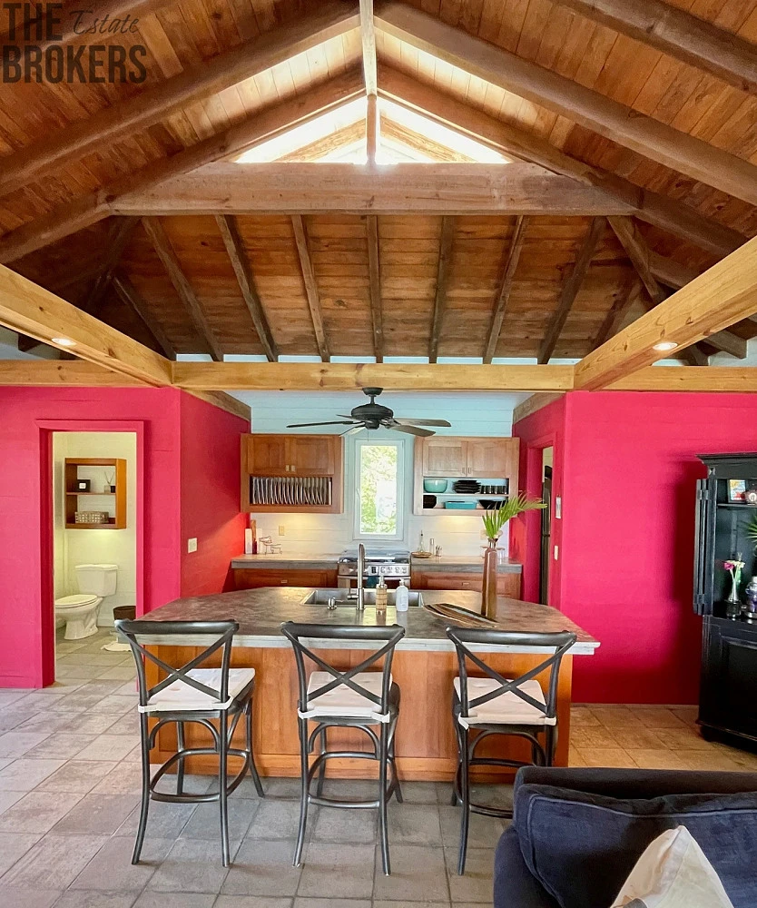 Camp Bay je opravdu zvláštní komunita nad vodou i pod vodou, podobných míst už na tomto světě moc nezbylo. Tato vila byla navržena renomovaným Roatanským architektem Halem Sorrentim, jehož jedinečné domy v ostrovním stylu můžete vidět po celém Roatanu. Dům poskytuje nádherný výhled nejen na pláž a oceán, ale také na horské úbočí a Port Royal National Forest, který nabízí to nejlepší z obou světů pro plážové povaleče a milovníky hor. Obrovské terasy jsou nejen skvělé pro nalezení soukromého místa na lenošení, ale jsou také perfektní pro zábavu se spoustou míst k sezení. Vnitřní obytné prostory i kuchyně mají přímý výhled na moře, takže i vaření přichází s výhledem. Hned vedle hlavní kuchyně je venkovní kuchyně s vestavěným plynovým grilem a dřezem. Dva prostorné obývací prostory jsou zařízeny moderním a super pohodlným nábytkem Crate and Barrel a West Elm. Hlavní ložnice má také posuvné skleněné dveře na terasu s výhledem na oceán, takže se můžete snadno dostat na terasu a nekonečný bazén, aniž byste museli projít hlavní částí domu. Hlavní koupelna krásně vykachličkovanou vnitřní sprchu s výhledem na moře a také venkovní sprchu hned za dveřmi koupelny na zadní terasu, kde se můžete sprchovat pod hvězdami.