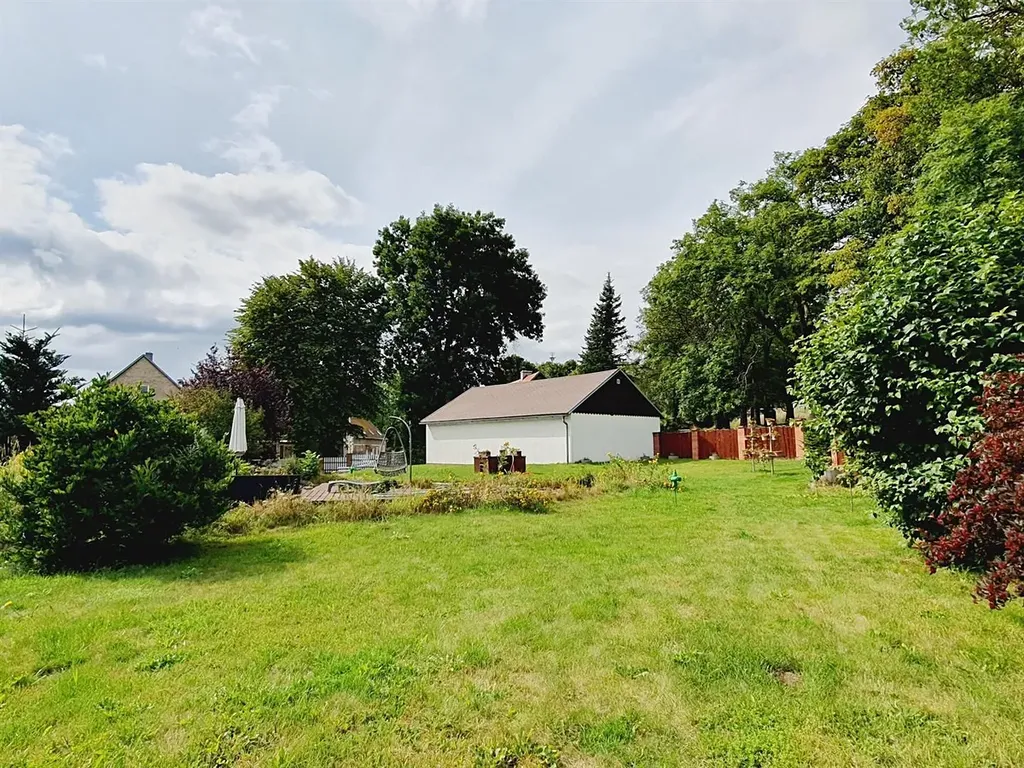 Dominantou nemovitosti je rozsáhlý pozemek o celkové výměře 1.866 m² a krásná oplocená zahrada (1.129 m²). Uprostřed ní najdete jezírko s vlastní filtrací a cirkulací vody, napájené z hlubokého vrtu. Jezírko lze využít jako okrasné s rybičkami, nebo ke koupání v soukromí. Uprostřed vodní plochy je příjemné posezení se zahradním nábytkem. Další pozemek o rozloze 737 m² může být využit např. jako ovocný sad, parkovací plocha nebo pro další účely dle vašich představ.