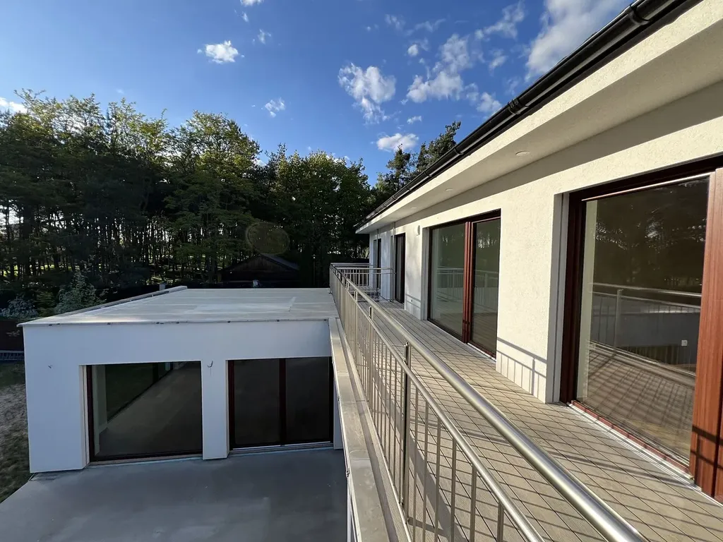 • 1. patro: čtyři pokoje a dvě koupelny. Každý pokoj má přímý vstup na balkón.