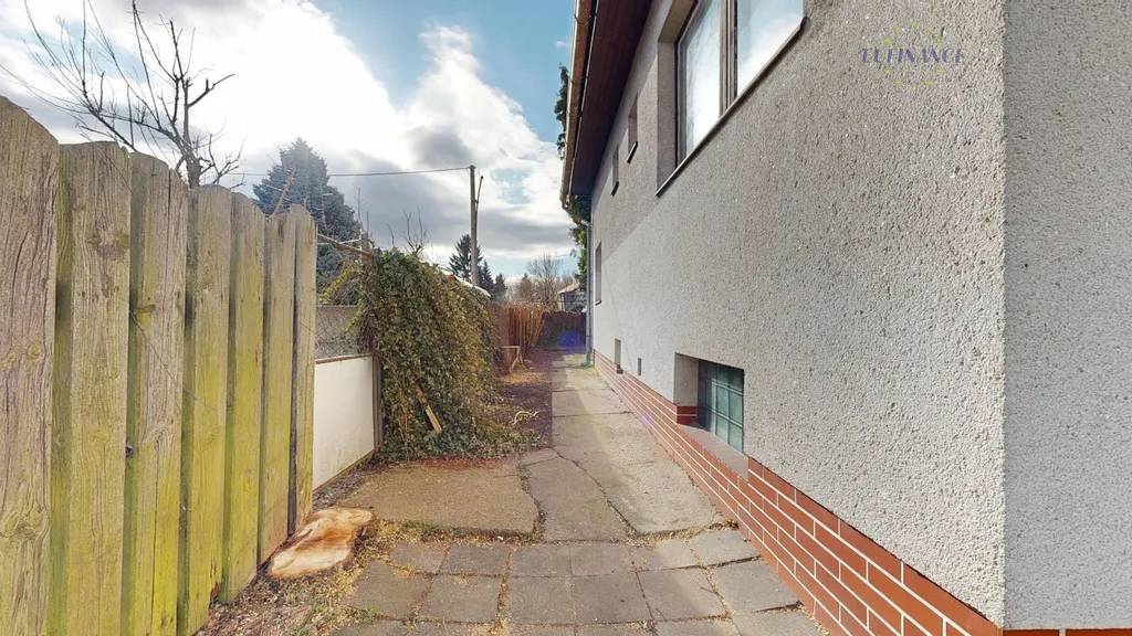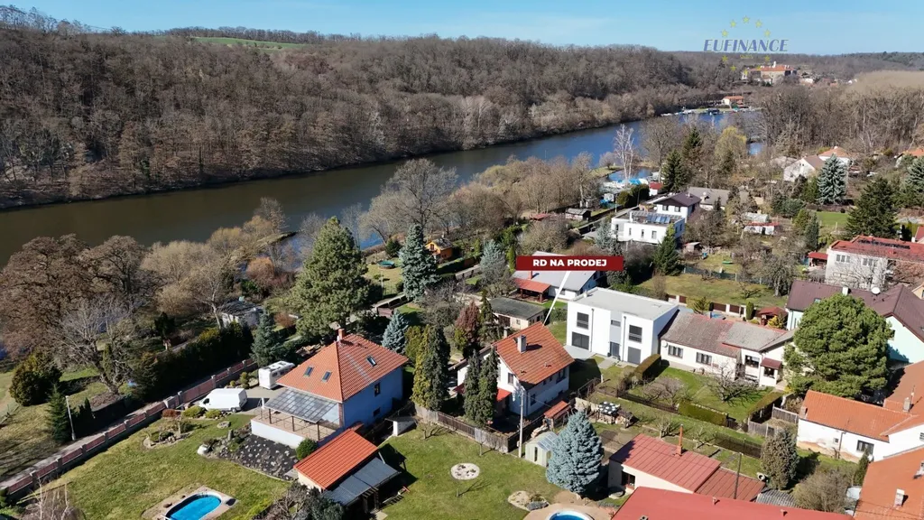Obvodové zdivo je vystavěno z cihel (tloušťka 45 cm) a není zatepleno. Součástí domu zkolaudovaného v roce 1980 je krásná zahrada se vzrostlými stromy a s hezkým výhledem na řeku Vltavu. Koupi domu lze financovat hypotékou, zatížit zástavním právem a rovněž možno pojistit proto povodním či záplavám. Parkovat lze v garáži, na vlastním pozemku nebo v obecní ulici před domem.