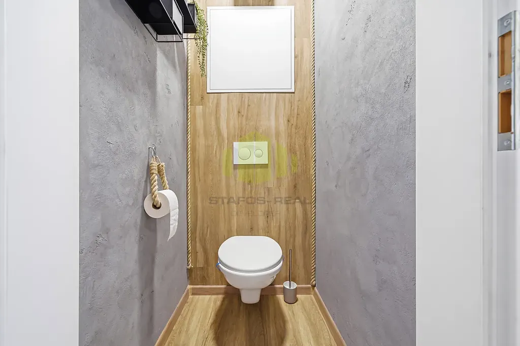Ložnice nabízí klidné zázemí a je vybavena novou nábytkovou sestavou s dostatkem úložných prostor. Dětský pokoj je světlý a plnohodnotný, vhodný jak pro spaní, tak i pracovní či herní zónu. Koupelna je provedena v moderním stylu s velkoformátovou dlažbou a nabízí prostorný sprchový kout, umyvadlovou skříňku s úložným prostorem a místo pro pračku a sušičku. Samostatná toaleta je prakticky oddělená.