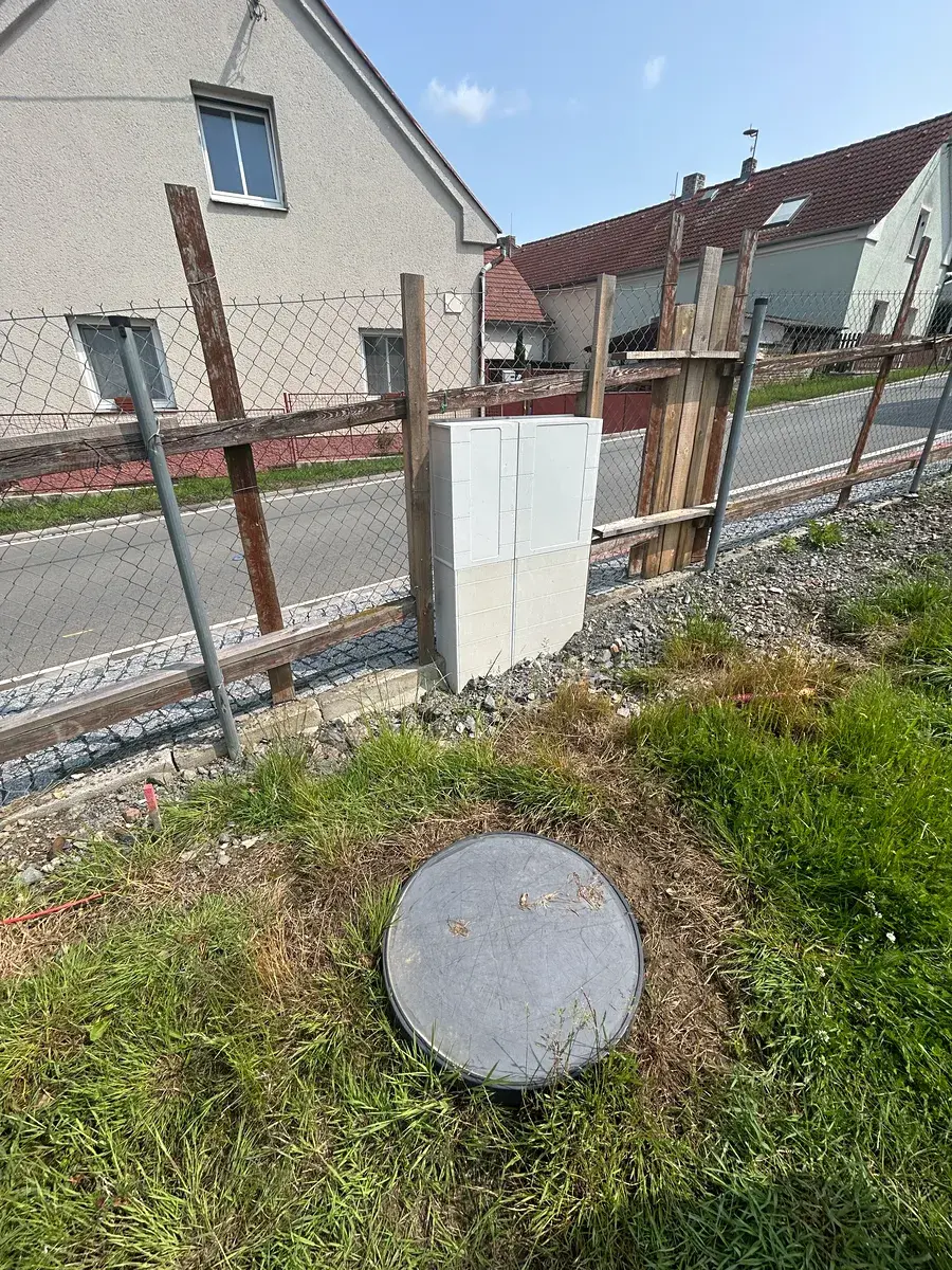 Inženýrské sítě : obecní vodovod, elektřina, kanalizační přípojka, optický kabel. Připraven vjezd na pozemek.