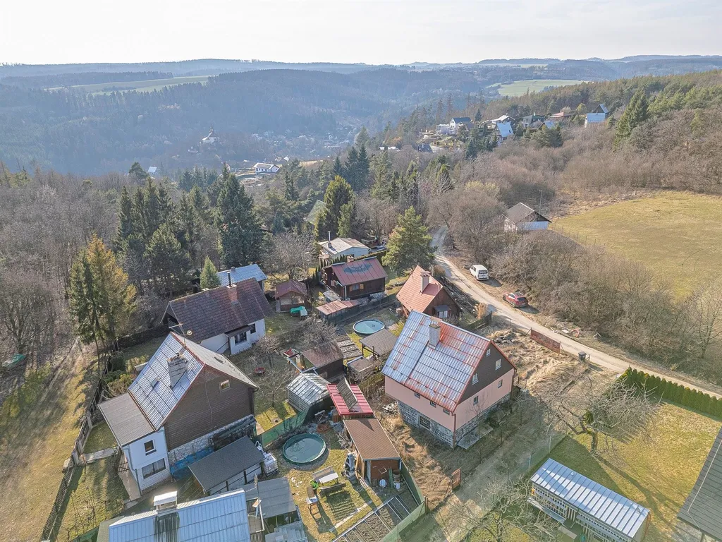 Díky rohové pozici pozemku ja možný vstup na pozemek ze 2 stran. K chatě je kompletní projektová dokumentace.