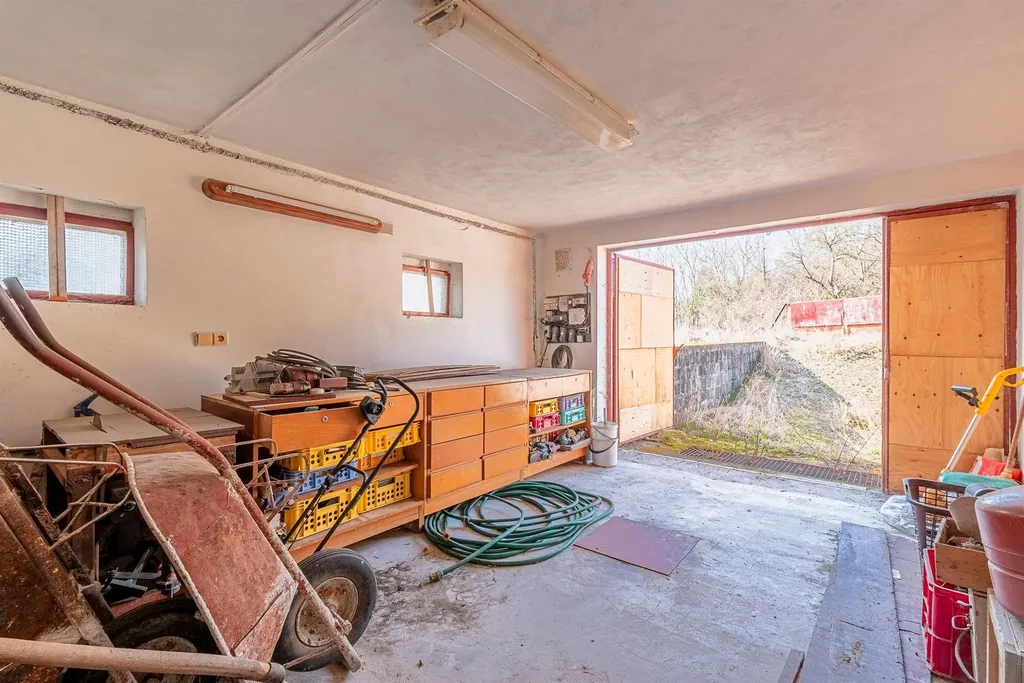 Technické: střecha sedlová, krytina plech, okna dřevěná, 2 x terasa, garáž s dílnou.