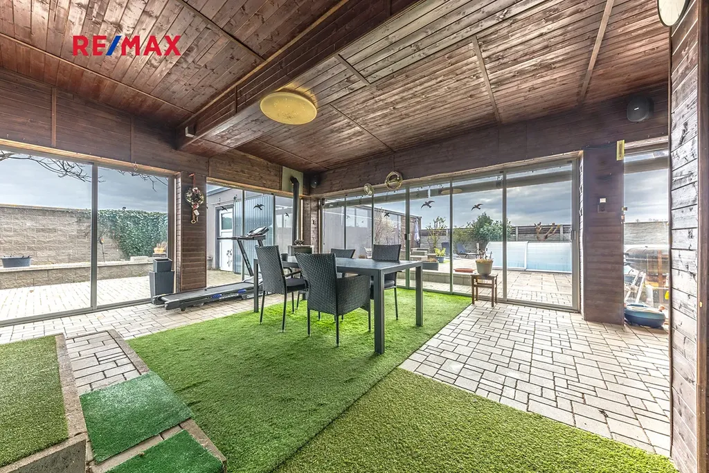 Prostornými pokoji – obývací pokoj (spolu se zimní zahradou) je ideální pro rodinná setkání nebo večerní filmové maratony. Hlavní ložnice i ostatní obytné pokoje nabízí dostatek místa pro klidný spánek a osobní pohodu.