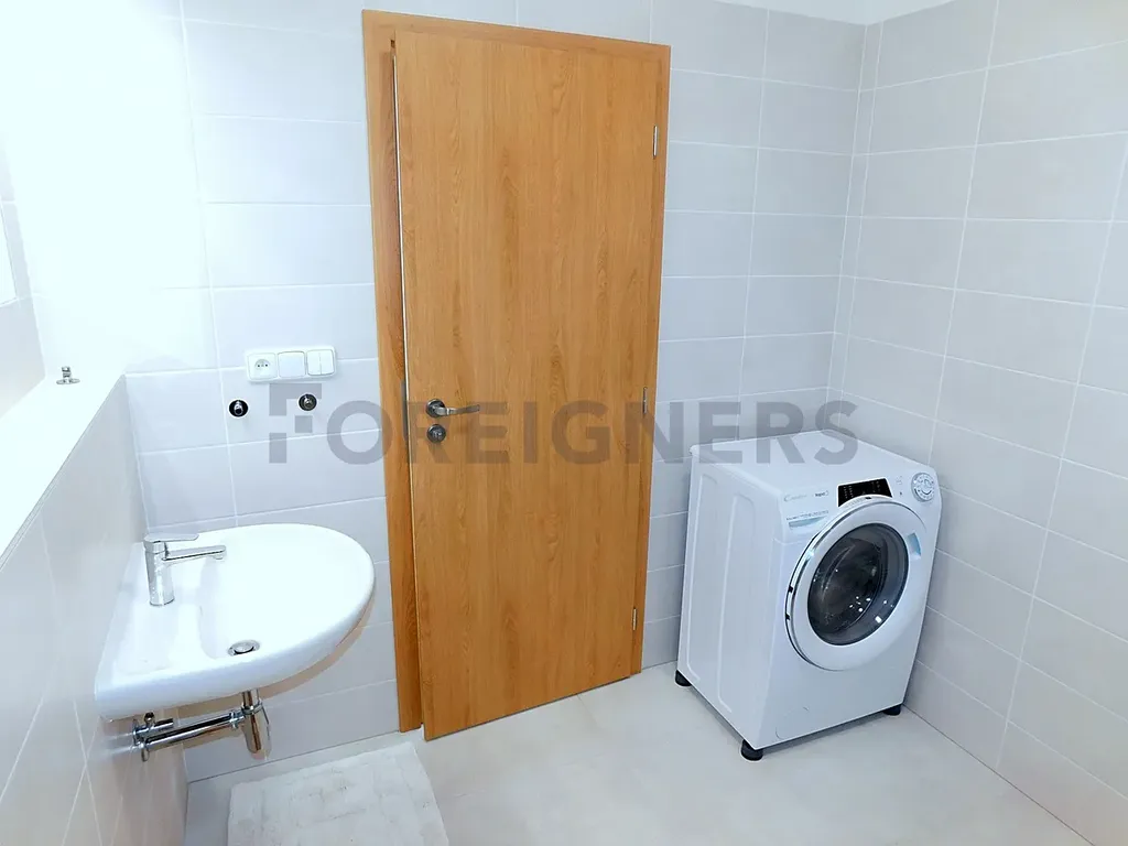 Byt je plně vybavený včetně stropních ventilátorů a připravený k okamžitému nastěhování. K dispozici je lednice s mrazákem, myčka, indukční varná deska s troubou a mikrovlnnou troubou, pračka se sušičkou v koupelně a veškerý nábytek dle fotografií.