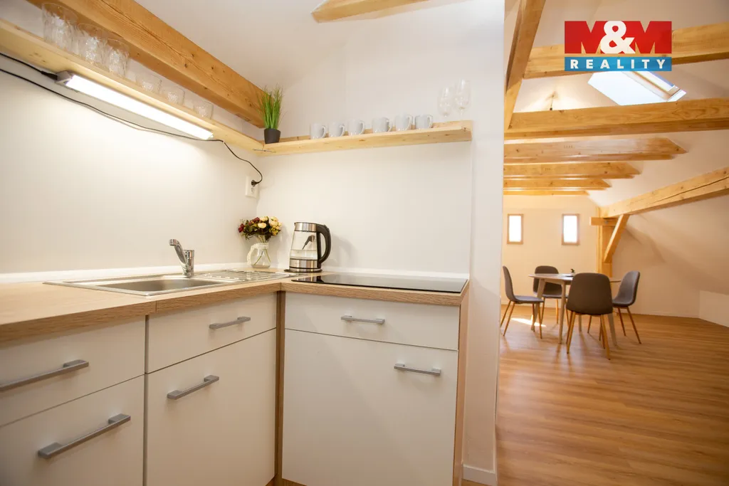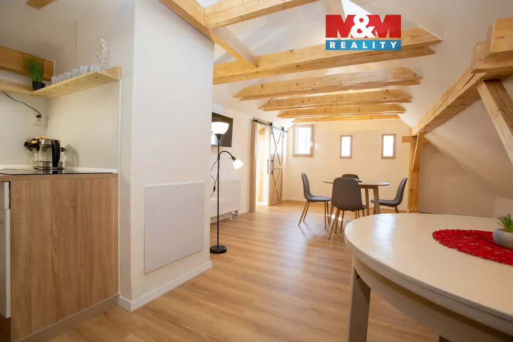 Nabízíme k prodeji nově vzniklý půdní apartmán v atraktivní lokalitě centra Jindřichova Hradce. Jednotka byla dokončena v letošním roce. Byt se nachází v domě s apartmány, které jsou v současnosti krátkodobě pronajímány, což z něj dělá zajímavou investiční příležitost. Vytápění zajišťuje centrální plynový kotel, připravena přípojka na vlastní plynový kotel. Atmosféra bytu navozuje klid a jedinečný genius loci historického jádra města. Tato nemovitost nabízí skvělý potenciál – ať už pro krátkodobé sezónní ubytování, dlouhodobý pronájem, nebo jako vlastní klidné bydlení v srdci města. Pokud hledáte byt, který spojuje historii, výjimečnou atmosféru a výhodné umístění, přijďte se přesvědčit osobně. Pro více informací a sjednání prohlídky kontaktujte makléře. S financováním Vám rádi zdarma pomůžeme.