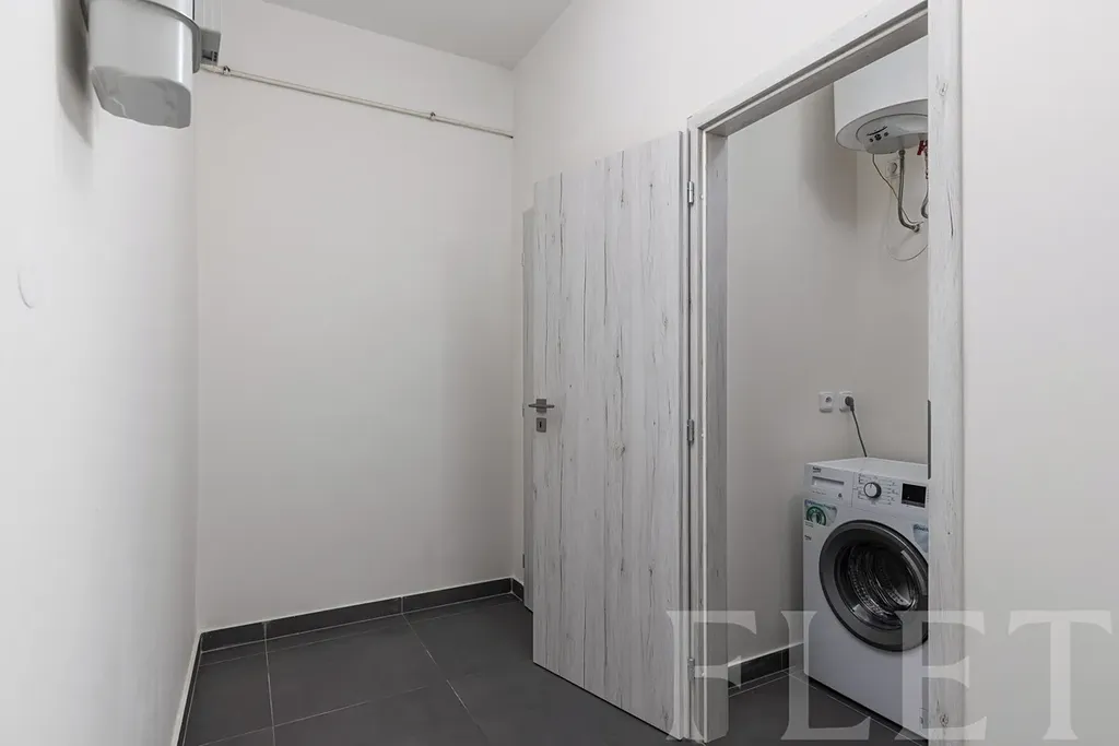 Při vstupu do bytu vás uvítá velká chodba, odkud se dostanete na samostatnou toaletu, do technické místnosti s pračkou a především do průchozího pokoje s kompletně vybavenou kuchyní (trouba, varná deska, digestoř, myčka nádobí a lednice s mrazákem). V této místnosti je dostatek místa i pro jídelní část. Druhý pokoj krásně poslouží jako ložnice. V moderní světlé koupelně je sprchový kout. K bytu náleží také sklepní kóje.