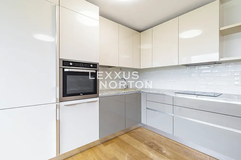 Kuchyňský kout je vybavený sklokeramickou varnou deskou, troubou, lednicí s mrazákem, mikrovlnnou troubou a myčkou nádobí. Koupelna ve spodním patře disponuje vanou a toaletou, v horním patře sprchou a toaletou. Ložnice jsou vybaveny vestavěnými skříněmi. Celý byt i rezidence nabízejí vysoký standard bydlení. V bytě jsou masivní dřevěné podlahy a klimatizační jednotky a v rezidenci je pro nájemce k dispozici soukromé fitness, sauna či uzavřený vnitroblok.