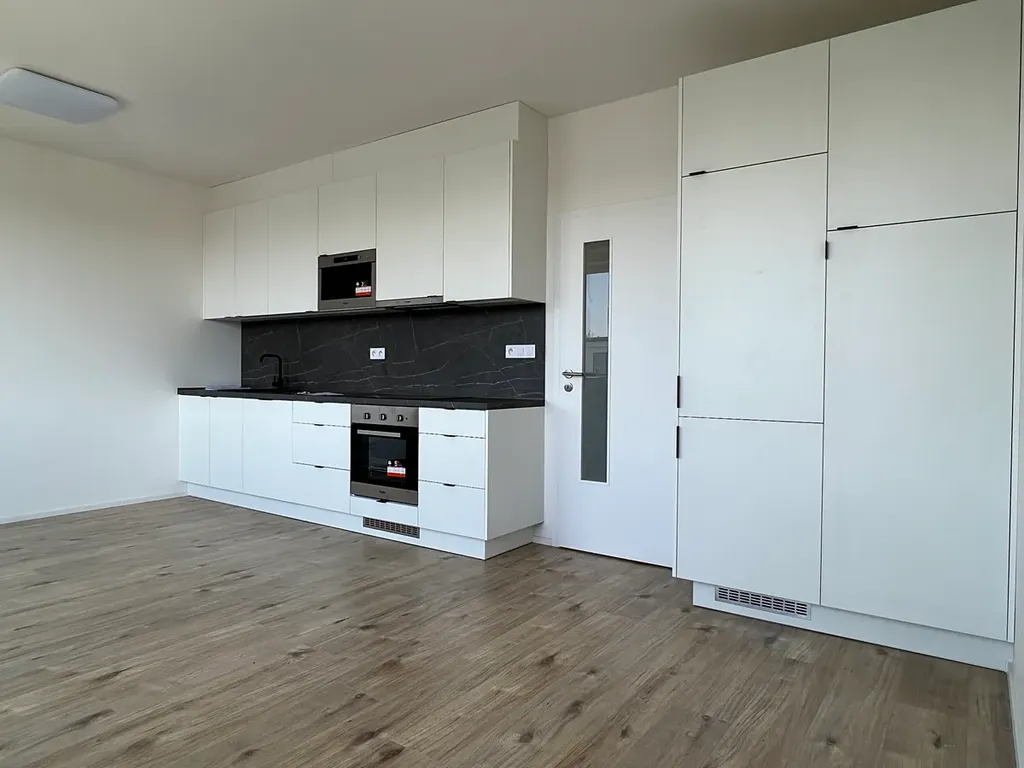 Byt se skládá ze dvou hlavních místností, kde v jedné je plně vybavená kuchyňská linka, vstupní haly, samostatné koupelny a WC se sanitární keramikou včetně baterií. V každé místnosti jsou přisazená stropní světla. K bytu přináleží komora na patře domu a jedno venkovní parkovací stání u domu.