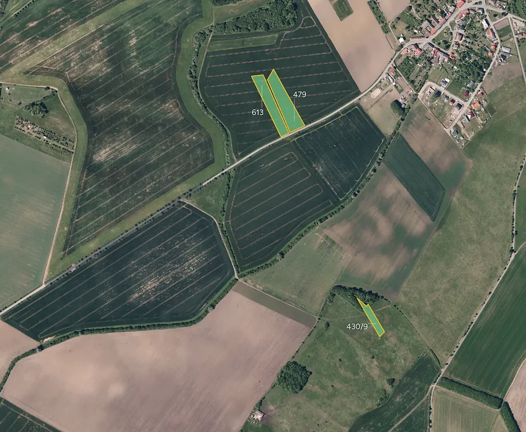 V okrese Kroměříž nabízíme k prodeji soubor zemědělských pozemků ve výlučném vlastnictví o celkové výměře 15 640 m². Pozemky jsou zapsány na třech listech vlastnictví: