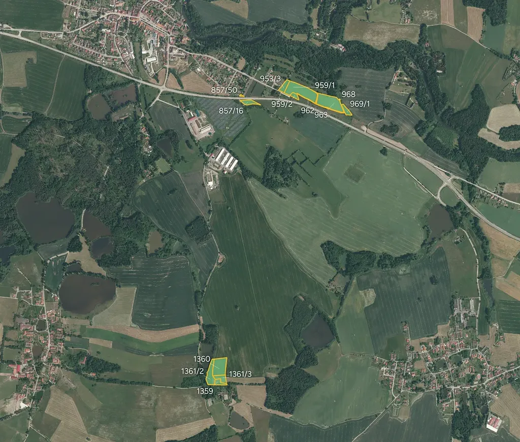 857/16, 857/50, 953/3, 959/1, 959/2, 961, 962, 963, 968, 969/1, 1359, 1360, 1361/2, 1361/3