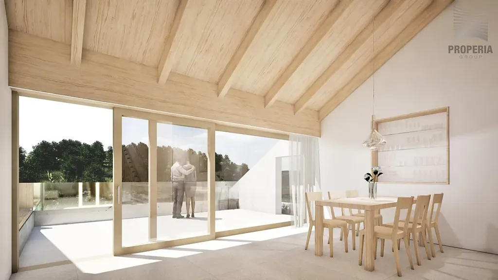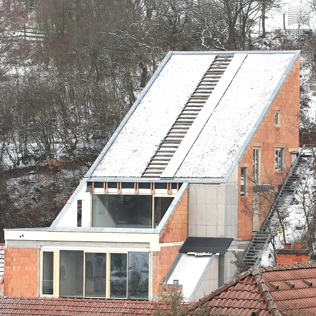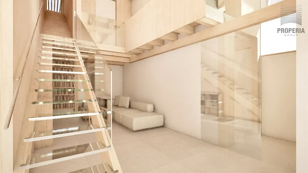 Západně orientovaná terasa je propojena s hlavním obytným prostorem velkým HS portálem, díky němuž se interiér přirozeně otevírá do exteriéru. Obytná část plynule propojuje kuchyni, jídelnu i obývací prostor a působí vzdušně a otevřeně. Vstupní hala je přístupná jak po schodišti, tak výtahem, a nabízí samostatnou toaletu. Praktickým doplňkem je technická místnost s prádelnou, která navazuje na kuchyňskou část.