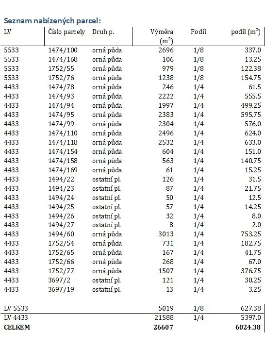• Celková výměra podílů: 6 024,38 m²