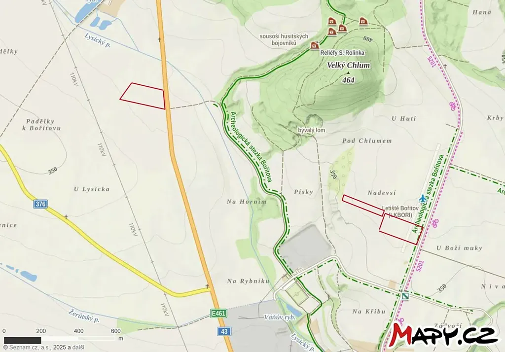 Parcely 2705, 2706, 2707 tvoří územní celek, jsou přístupné ze silnice a mají velmi dobrou bonitu. Na hranici pozemku vede Archeologická stezka Bořitova k Sousoší husitských bojovníků. Parcela č. 2706 je součástí Letiště Bořitov (LKBORI).