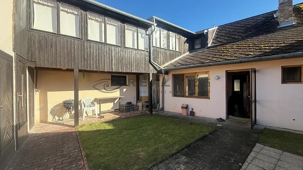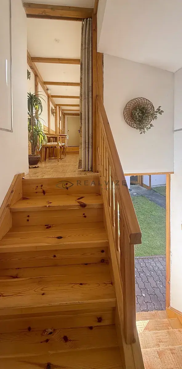 Za domem přes pavlač se prochází do prvního patra domu kde je podkrovní byt o dispozici 2+1 - kuchyně, obývací pokoj, ložnice a koupelna s vanu a wc.