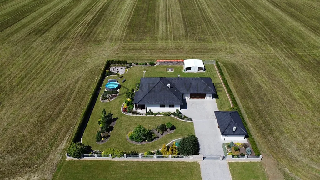 Pozemek zahrnuje nádhernou zahradu o rozloze přibližně 2 200 m², ideální pro odpočinek a venkovní aktivity. Navíc zde najdete grilovací zónu a odpočinkovou zónu s ohništěm, které jsou ideální pro rodinná setkání nebo posezení s přáteli. Zbývající část pozemku o rozloze 8 370 m² je pronajata zemědělskému družstvu, které se o ni stará.