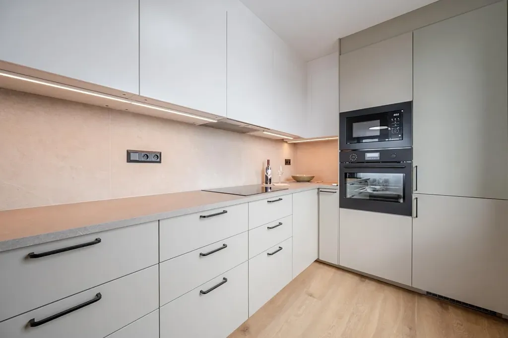 V rámci nedávné rekonstrukce byly v bytě položeny nové podlahy, instalovány kompletní rozvody a upraveny veškeré povrchy. Srdcem bytu je nová kuchyňská linka plně vybavená moderními spotřebiči, včetně lednice, mikrovlnné i horkovzdušné trouby, indukční varné desky a vestavné myčky. Koupelna s vyhřívanou podlahou, zrcadlem a topným žebříkem. Sprchový kout s termostatickou hlavicí. WC s bidetovou sprchou.