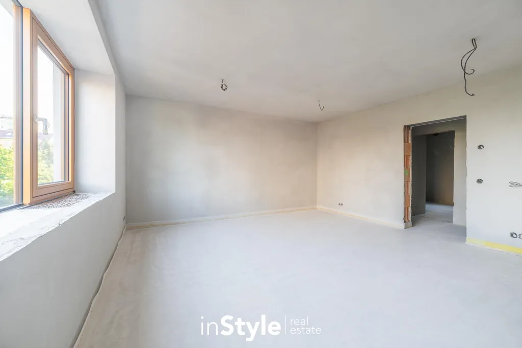Rodinný dům 4 + kk s užitnou plochou 272 m stojí na pozemku o velikosti 271 m v klidné části města, přímo u parku. Původní dům z roku 1932 byl v roce 2021 téměř kompletně zbourán a na jeho místě vznikla zcela nová stavba, která je nyní ve stavu Shell and Core tedy připravená k dokončení interiéru, garáže, terasy i okolních ploch.