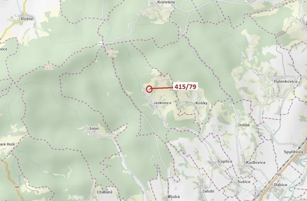 Trvalý travní porost o výměře 2523 m2, parcelní číslo 415/79, podíl 1/1, katastrální území Jankovice u Uherského Hradiště, obec Jankovice, obec s rozšířenou působností Uherské Hradiště, okres Uherské Hradiště, Zlínský kraj.