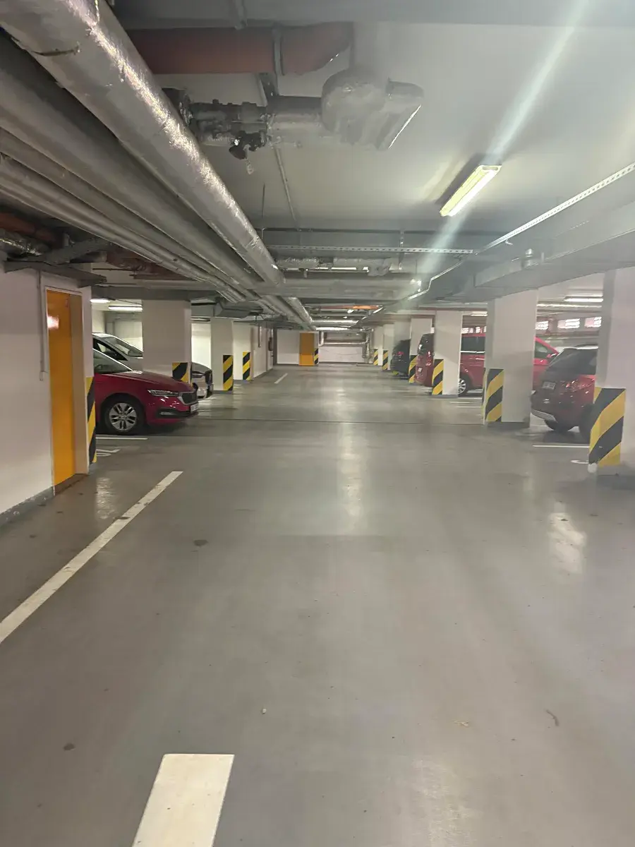 K bytu náleží také vlastní parkovací stání (12 m²), což výrazně