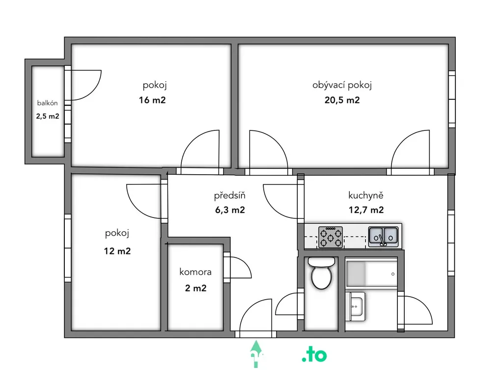 Interiér je díky velkým oknům příjemně prosvětlený. Součástí bytu je balkón o velikosti 2,5 m² a komora přímo v bytě, která řeší každodenní úložné potřeby. Další prostor nabízí sklepní kóje.
