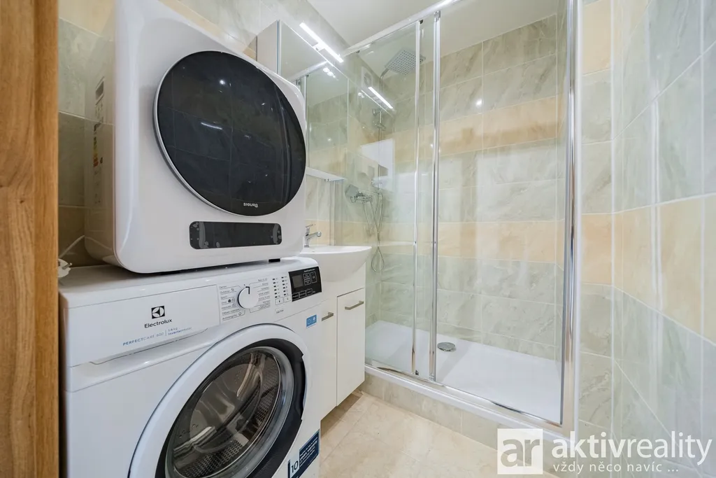 Byt prošel naprosto kompletní a pečlivou rekonstrukcí – jsou zde nové rozvody elektřiny i vody, nové podlahy, moderní osvětlení, kvalitní obklady a dlažba. Součástí je nová kuchyňská linka včetně spotřebičů, koupelna vybavená moderní sanitou, pračka, sušička i lednice – vše je zahrnuto v ceně.