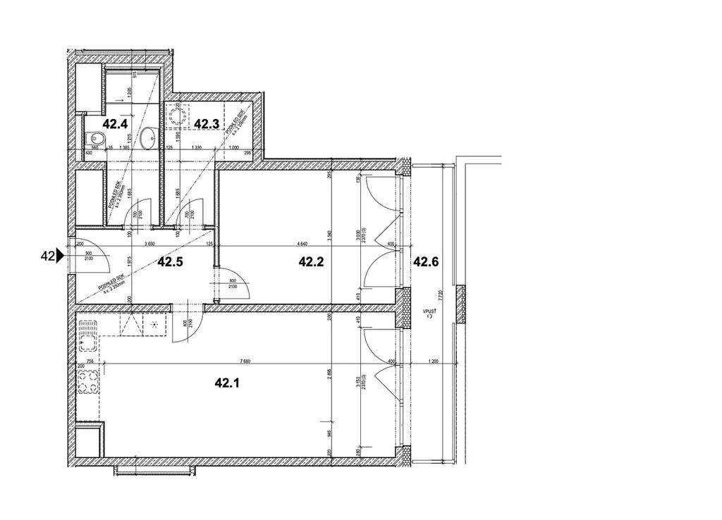Krásná koupelna s velkým walk-in sprchovým koutem, prostorná předsíň a plně vybavená kuchyňská linka už jenom dotvářejí ten správný pocit skutečného domova.