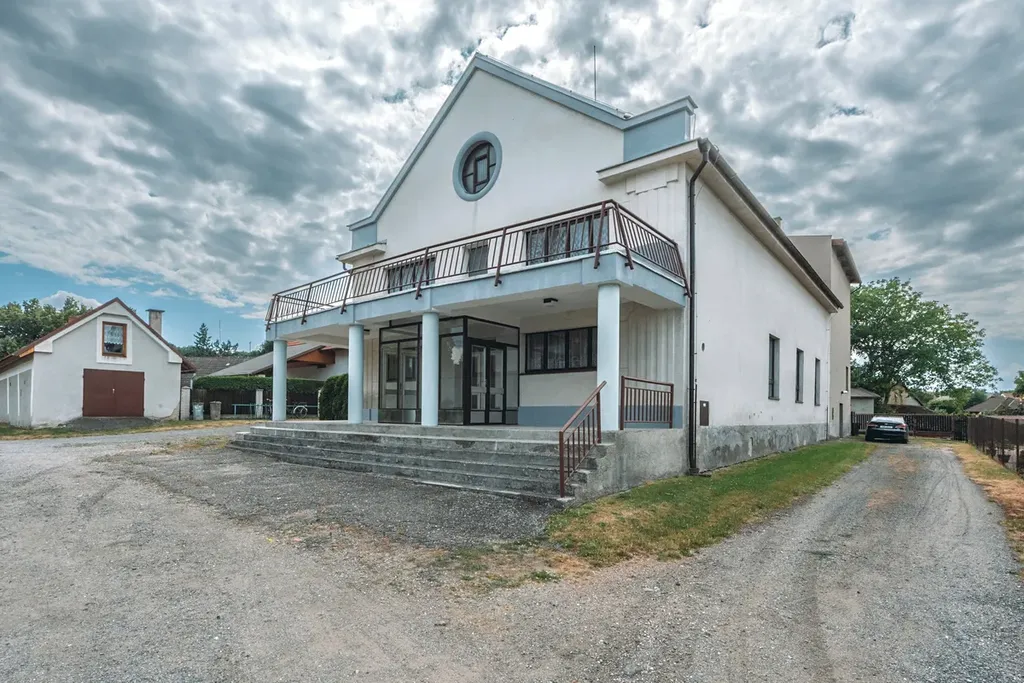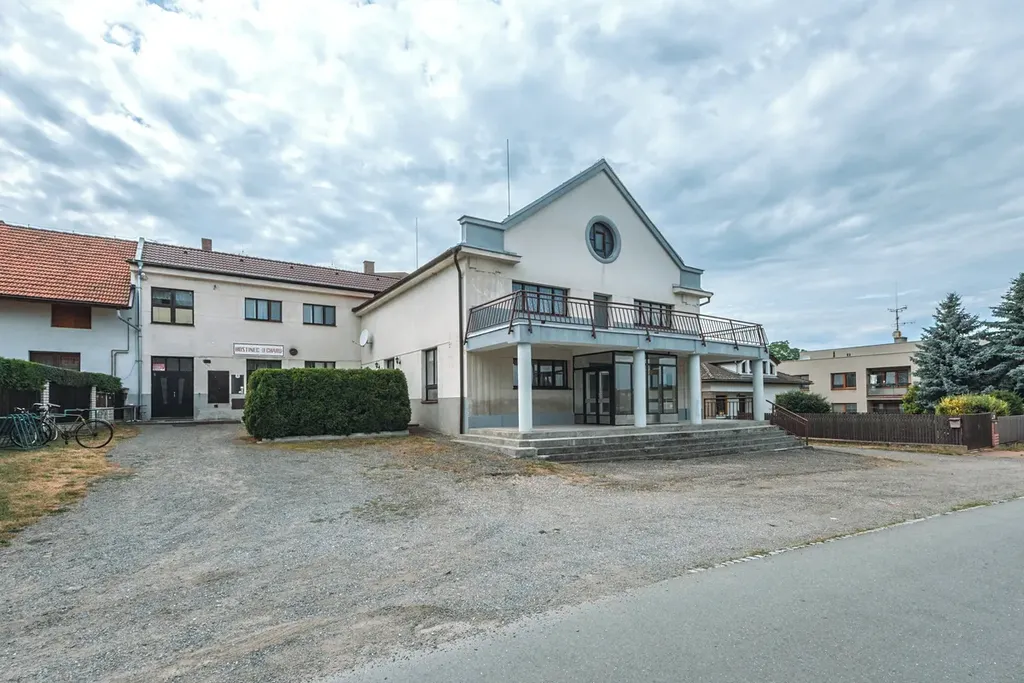 Představuji vám rozlehlou nemovitost se zajímavým potenciálem využití. Budova se nachází v centru obce a většinu její plochy tvoří velký sál s jevištěm - bývalý obecní "kulturák". Na něj navazuje hospoda o rozloze 132 m2, která je stále v provozu a nad ní najdete byt s plochou 107 m2 s balkonem 14 m2, který je nyní pronajímán (na fotkách není, uvidíte ho při prohlídce). Součástí je i pozemek před domem, který poslouží jako parkoviště a menší pozemek za domem. Oba s celkovou rozlohou cca110 m2. Pod jevištěm se nachází sklepy a kotelna. Hospoda a byt jsou vytápěny plynovými kotli a sál kotlem na tuhá paliva. Stavba je v celkově dobré kondici a jeví se vhodnou na případnou přestavbu na bytový dům. Kousek od obce je nájezd na dálnici, takže do Hradce, Pardubic, či Prahy dojedete snadno a rychle. Ať již je váš záměr jakýkoliv, rád si ho poslechu. Takže vemte kámoše a přijeďte do Klamoše.