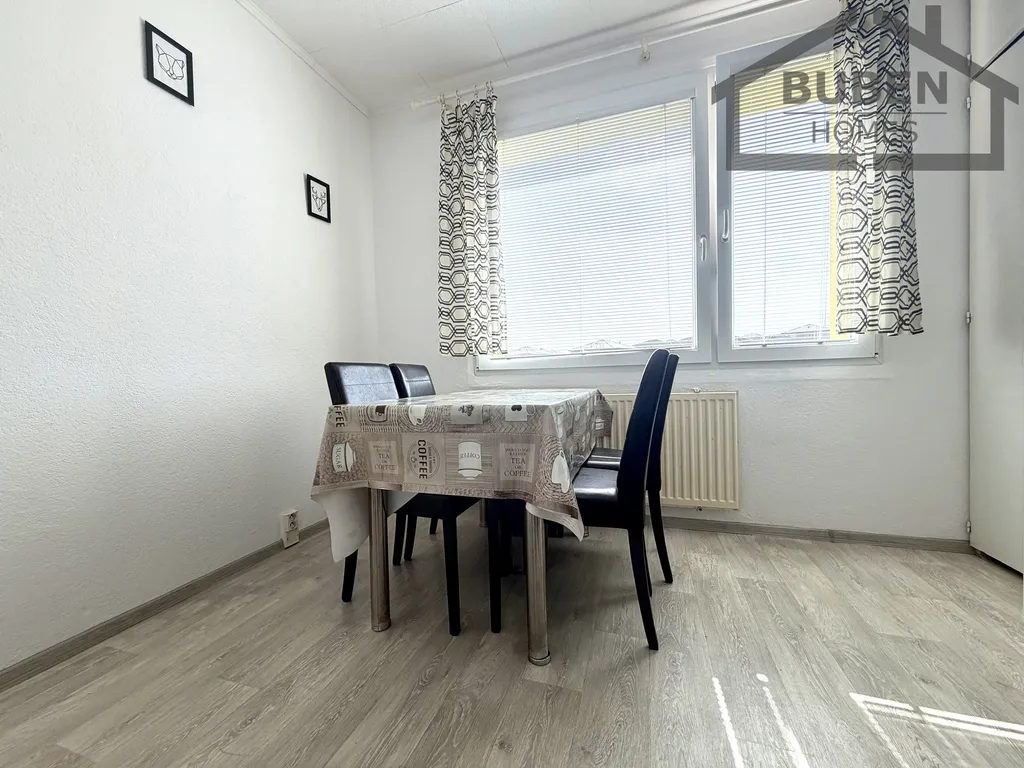 Byt se nachází ve 4. patře bytového domu. Podlahová plocha bytu činí 38 m2. Byt tvoří vstupní chodba, koupelna se sprchovým koutem, samostatné WC, kuchyň s prostorem na jídelní kout a prostorný pokoj. Bytový dům se nachází na okraji sídliště.
