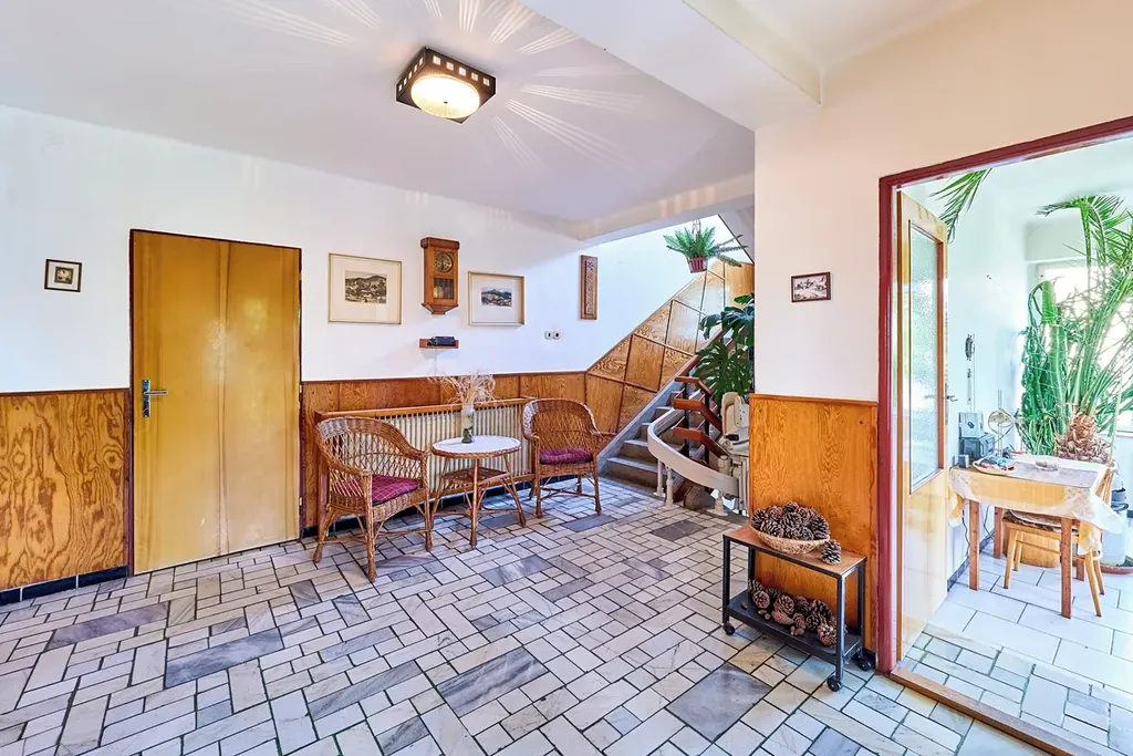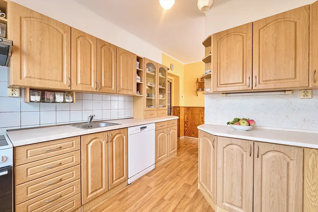 Prostorný dům naleznete na velmi sympatickém místě. Jedná se totiž o slepou ulici, která zajišťuje přístup pouze k šesti domům, takže je zde opravdu klid a navíc si užijete pěkný výhled na město. Samotný dům je ve velmi pěkném stavu - většina je původní, kuchyně a koupelna byly již renovovány. Díky velkorysé obytné ploše lze dům přizpůsobit i pro dvougenerační bydlení. Přízemí nabídce tři místnosti a garáž - nyní je koncipováno jako užitkové a skladovací zázemí, z nejsvětlejší místnosti je zimní zahrada. V prvním patře jsou další tři ložnice, rozlehlý obývák se vstupem na balkon a kuchyně spojená s jídelnou a špajzkou. Samozřejmě i koupelna a samostatné WC. K dispozici máte podkroví, které lze případně zobytnit. Ve sklepě najdeme technické zázemí - moderní plynový kondenzační kotel i kotel na tuhá paliva. Dům obklopuje pěkná zahrada s ideální rozlohou, která poskytuje soukromí. V Chocni naleznete veškeré zázemí. Jsou zde školy, školky, obchody, restaurace. Zmíním i skvělou dostupnost vlakem - například za dvacet minut jste v Pardubicích. Na procházku, či kolo vyrazíte přírodním parkem podél Orlice, nebo do rozlehlých lesů, které se táhnou až do Hradce Králové. Pokud hledáte dostatek prostoru pro svou rodinu azároveň bydlení na dobré adrese, tak mi zavolejte a domluvíme prohlídku.