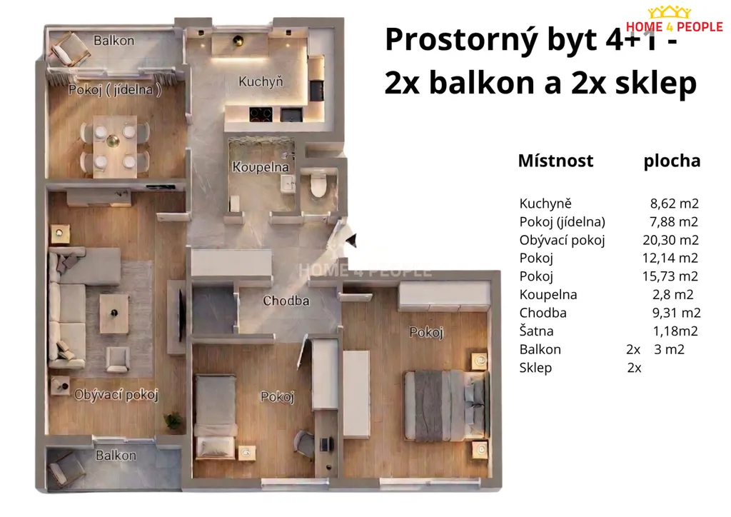 To, co tento byt odlišuje od ostatních, je jeho nadstandardní příslušenství. K dispozici máte hned dva balkony (2x 3 m²) , které nabízejí ideální prostor pro relaxaci nebo pěstování květin. Praktickou stránku bydlení doplňují také dva sklepy. Jeden se nachází přímo na patře bytu, což oceníte pro uložení věcí denní potřeby, a druhý klasický sklep najdete v přízemí domu.
