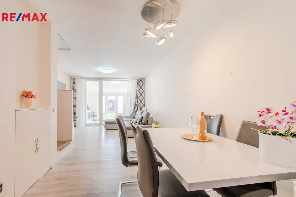 V exkluzivním zastoupení Vám nabízíme k pronájmu třípodlažní řadový dům 4+kk, 115 m² s parkovacím místem a udržovanou zahradou 80 m² v klidné části vyhledávané obce Nupaky, kousek od hranice hlavního města Prahy.