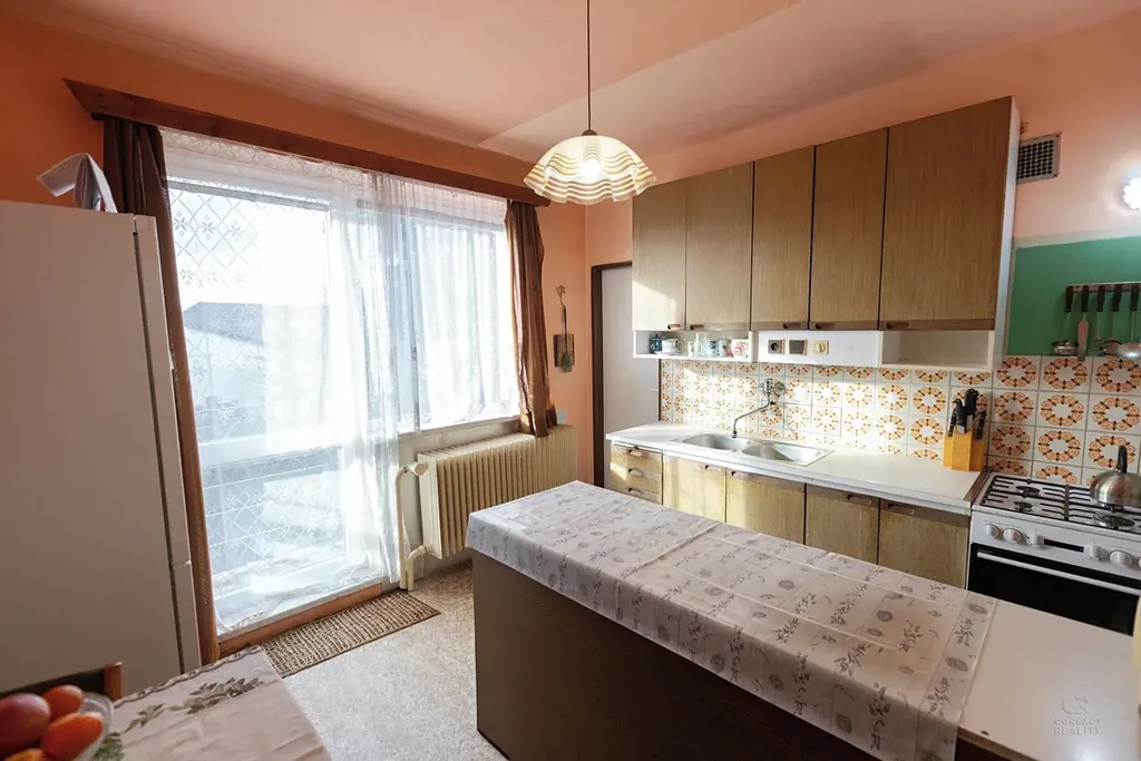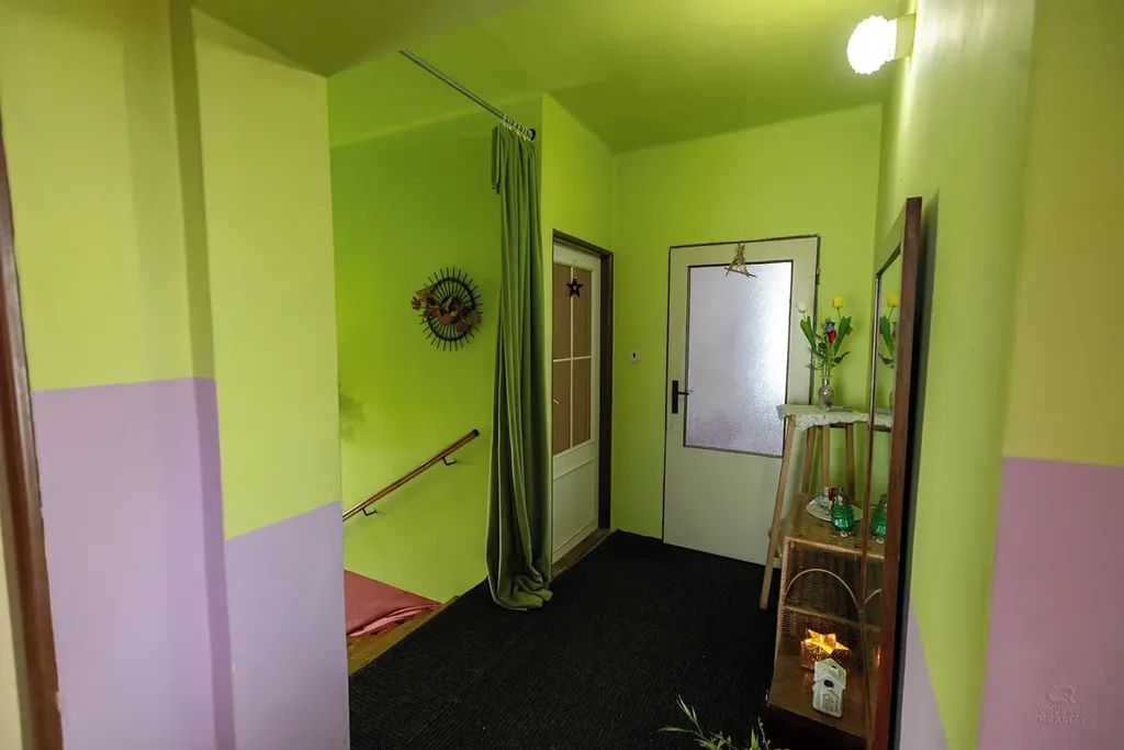 Obytné patro o dispozici 4+1 a výměře 88 m² s balkonem a terasou, je připraveno k modernizaci dle vlastních představ. Dům je vhodný k rekonstrukci, což z něj činí nejen ideální příležitost pro vícegenerační bydlení, ale také zajímavou investiční příležitost, ať už formou rozdělení na dvě bytové jednotky, nebo vytvořením nájemního bydlení v žádané a klidné lokalitě s dlouhodobým potenciálem růstu hodnoty.