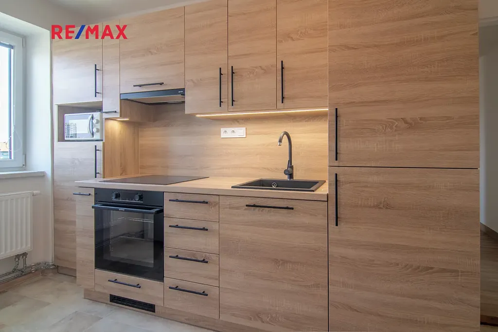 Byt prošel čerstvou rekonstrukcí. Ma zděné jádro, koupelna s vanou. Nový kondenzační kotel s rozvody topení, nové rozvody elektřiny, podlahy PVC. Moderní kuchyňská linka s el. troubou, indukční deskou, mikrovlnnou troubou, lednicí s mrazákem.