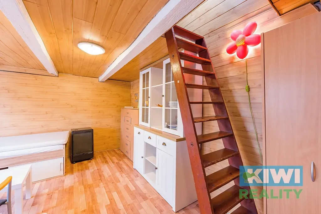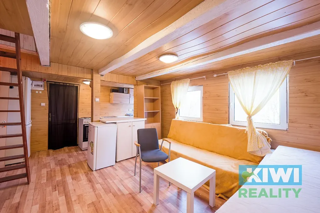 Podsklepená chata o užitné ploše cca 22 m2 má zděné základy, zbytek je dřevostavba.