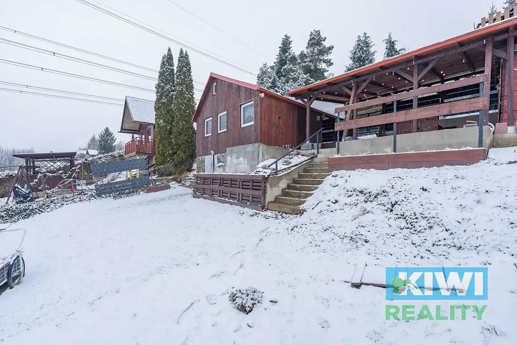 Chata i pozemek je v osobním vlastnictví, nachází se na kaskádovitém pozemku o ploše cca 395 m2 s krásným výhledem do okolí. Pozemek je oplocen, parkování je možné nedaleko vstupu do osady.