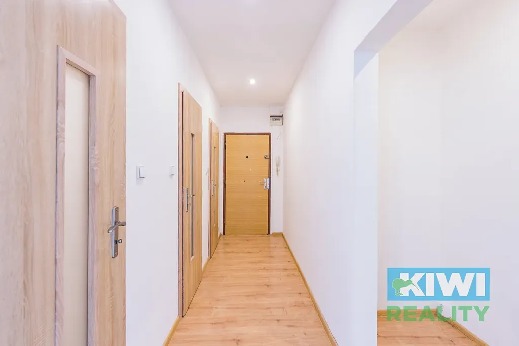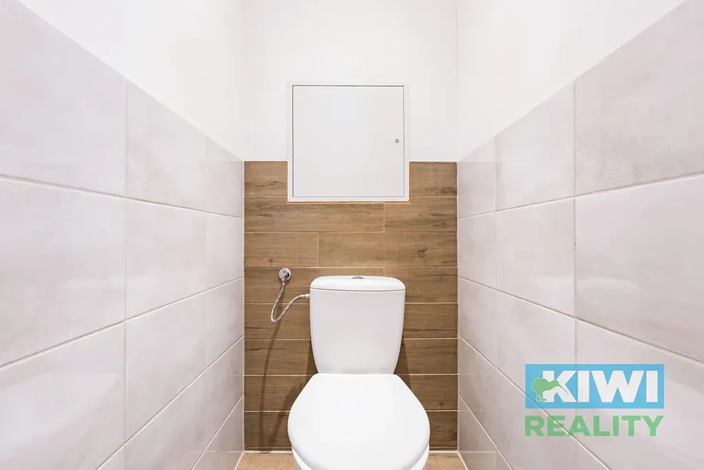 V rámci rekonstrukce bytové jednotky došlo k položení plovoucích podlah v celém bytě, v koupelně a na toaletě jsou podlahy keramické. Elektroinstalace je všude v mědi, doplněno bylo bodové osvětlení, nové jsou interiérové dveře a obložky, omítky. Ve vyzděné koupelně s keramickými obklady je usazena vana a koupelna je prakticky oddělena od toalety. Výhodou je dostatek úložného prostoru. Hned za vstupem do bytu je vybudovaná samostatná šatna a v předsíni najdete dva výklenky, které mohou být využity pro vestavné skříně.