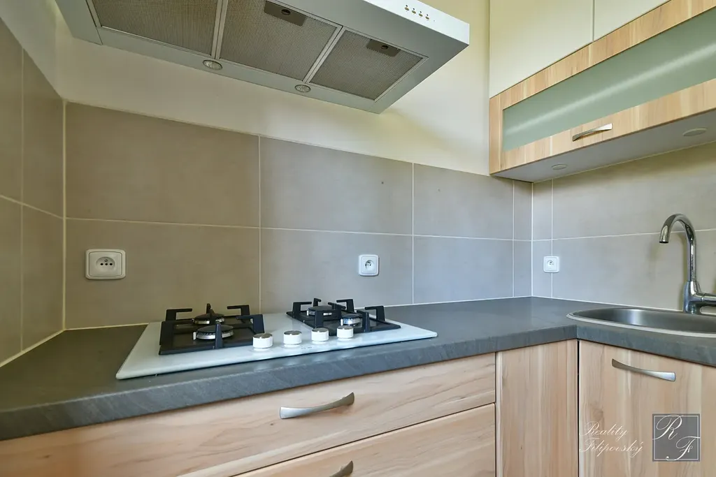 Bytová jednotka je aktuálně nově vymalována a jsou zbroušeny parketové podlahy. V nedávné době byla zrekonstruována koupelna, toaleta i kuchyně. Ta je vybavena elektrickou troubou, plynovou varnou deskou i myčkou nádobí.