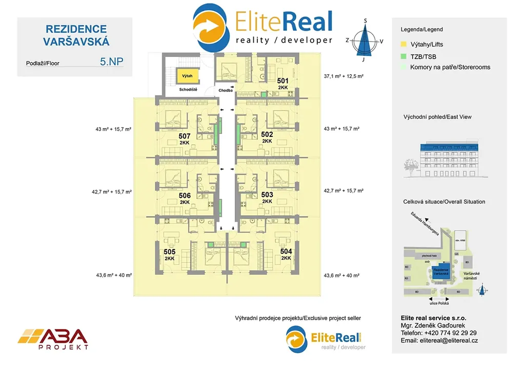 Elite real service s.r.o., výhradní prodejce projektu, Vám nabízí prodej nové bytové jednotky v městské části Olomouc - město v blízkosti ul. Wolkerova, výstaviště Flora, Čechových a Smetanových sadů v developerském projektu Rezidence Varšavská.