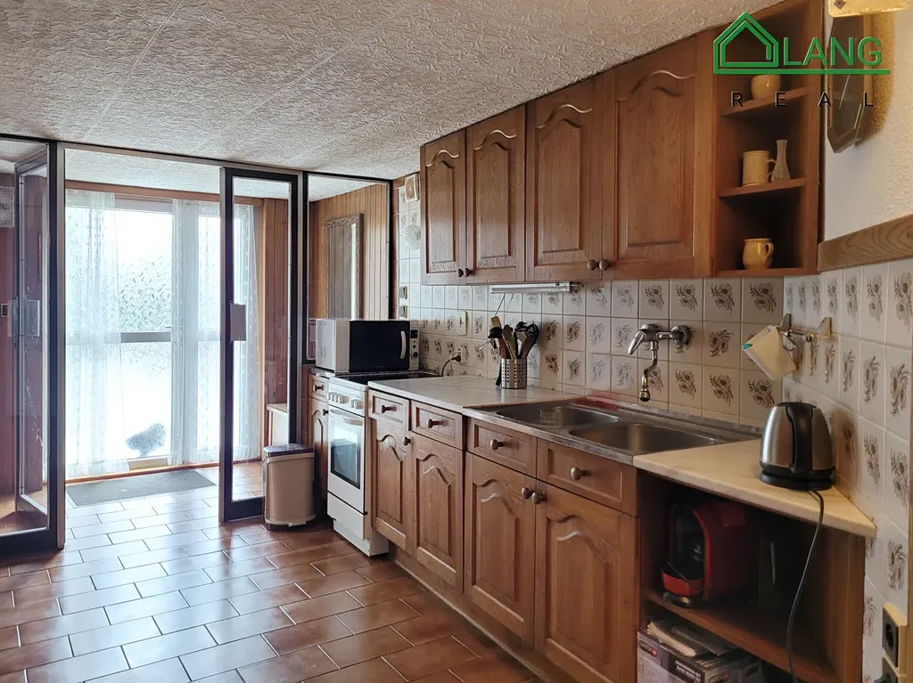 Kuchyňská linka je vybavená nádobím i všemi spotřebiči lednice s mrazákem, elektrický sporák, myčka nádobí, mikrovlnka a rychlovarná konvice. Z kuchyně je vstup na prostornou terasu s krásným výhledem do zahrady. Na terase je příjemné posezení, kde si můžete odpočinout při kávě nebo zorganizovat víkendové barbecue s přáteli.