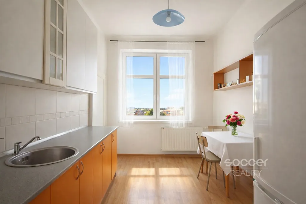 Zrekonstruovaný, prostorný byt se nachází ve třetím patře udržovaného cihlového činžovního domu v Revoluční ulici.