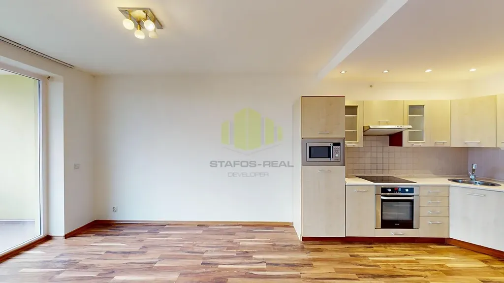 Samotný byt je orientován na západní stranu, což zajišťuje dostatek přirozeného světla po celý den a zároveň příjemnou atmosféru zejména v odpoledních a podvečerních hodinách. Dominantou bytu je prostorný obývací pokoj s kuchyňským koutem, který je propojen s lodžií, stejně jako samostatná ložnice. Lodžie je přístupná z obou místností francouzskými okny a nabízí dostatek prostoru pro venkovní posezení či relaxaci, a to s výhledem do okrasných zahrad rodinných domů, který poskytuje dlouhodobou jistotu zachování soukromí a nezastínění budoucí výstavbou.