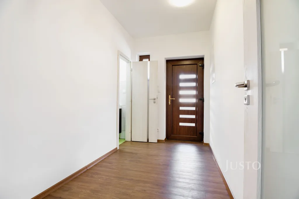Dispozice domu nabízí 6 pokojů, které zajišťují dostatek místa i pro vícečlennou rodinu. Kuchyň je vybavena na míru vyrobenou kuchyňskou linkou s vestavěnými spotřebiči, jako je myčka, indukční varná deska a trouba. Koupelna splňuje vysoké standardy a nabízí vanu i sprchový kout. Samozřejmostí jsou vestavěné skříně, které poskytují dostatek úložného prostoru. Dům je vybaven moderními technologiemi – podlahovým vytápěním napojeným na tepelné čerpadlo, příprava na zabezpečovací systém, plastovými okny se žaluziemi a sítěmi proti hmyzu. Interiér je světlý, vzdušný, s příjemnou výškou stropů 2,65 m a kvalitními obložkovými zárubněmi.