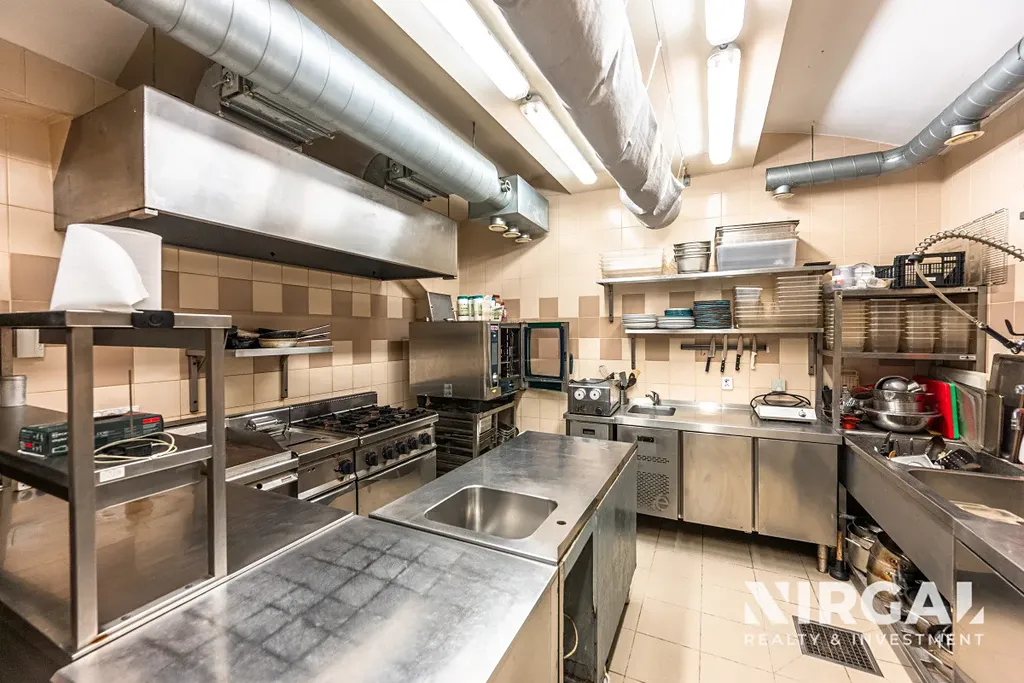 Součástí pronájmu je plně vybavená profesionální kuchyně s kvalitní gastronomickou technologií, včetně konvektomatu, myčky nádobí, chladicích a mrazicích zařízení, výkonného sporáku a veškerého vybavení potřebného k okamžitému zahájení provozu. Nábytek a interiérové prvky jsou zahrnuty v odstupném.