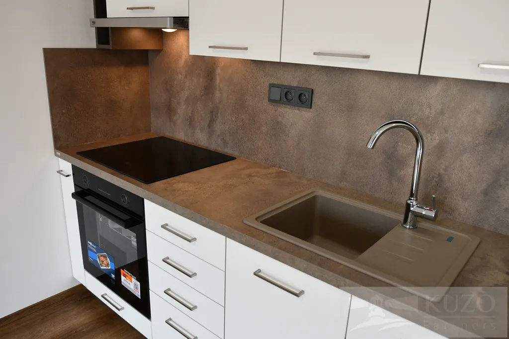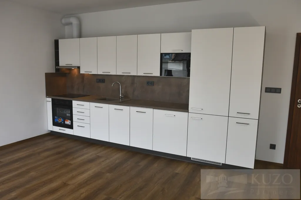 Kuchyňská část bytu je plně vybavená moderními elektrospotřebiči, včetně elektrické varné desky, pečící trouby, digestoře, myčky a ledničky s mrazničkou, což jistě potěší každého milovníka vaření. Velkorysá lodžie nabízí dostatek prostoru pro posezení a užívání si slunečných chvil, zatímco velká okna propouštějí do interiéru dostatek denního světla.