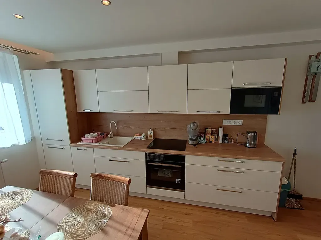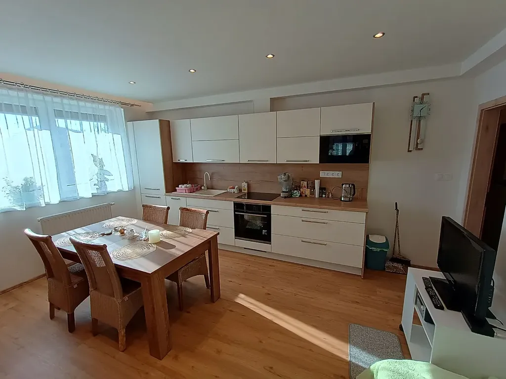 Nabízíme Vám příležitost získat nový a zařízený byt 2+kk v přízemí menšího bytového domu na okraji města Trhové Sviny. Dům byl dokončen v roce 2021. Byt je kompletně zařízen a nebyl dosud užíván. Vše je tedy nové a nepoškozené. Prostorové uspořádání bytu je následující. Ze společné vstupní chodby v přízemí domu je vstup do zádveří bytu. Koupelna je prostorná a je vybavena sprchovým koutem, umyvadlem, bidetem a WC. V koupelně je dále umístěna automatická pračka. Na stěně je kombinovaný topný žebřík, podlaha má elektrické podlahové vytápění. Chodbou s vestavěnými skříněmi je dále přístup do velkého pokoje s vybavenou kuchyňskou linkou. Dále je přes tento pokoj přístup do ložnice. V ložnici je velká postel s elektrickým polohováním a zdravotní matrací. Před okny jsou osazeny venkovní elektrické žaluzie. Vybavení je dobře patrné z fotek. K bytu dále patří menší komora, společná místnost na kola a kočárky. Součástí ceny je jedno venkovní parkovací stání před oknem z pokoje. Je možné si dokoupit i druhé venkovní parkovací stání. Byt není zatížen žádnou právní vadou ani zástavou a je tedy možné financování úvěrem.