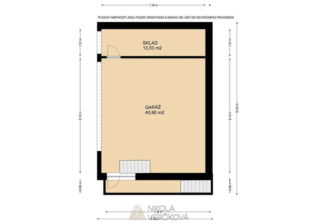 K domu náleží velkorysá samostatná garáž pro dvě auta a ještě něco navíc, o výměře 40 m2. Součástí garáže je také technická místnost (13m2), která je ideální pro dílnu, sklad nebo prostor pro uskladnění věcí.