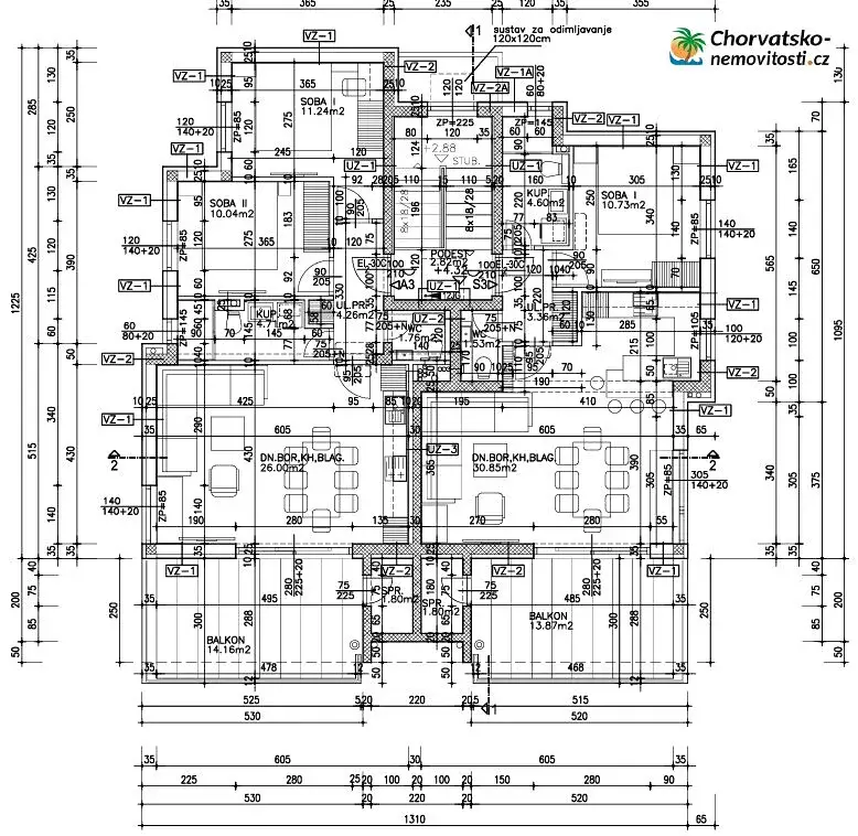 Na prodej byt 2+1 (S3) o celkové ploše 63,54 m2 ve druhém patře novostavby v Novalji